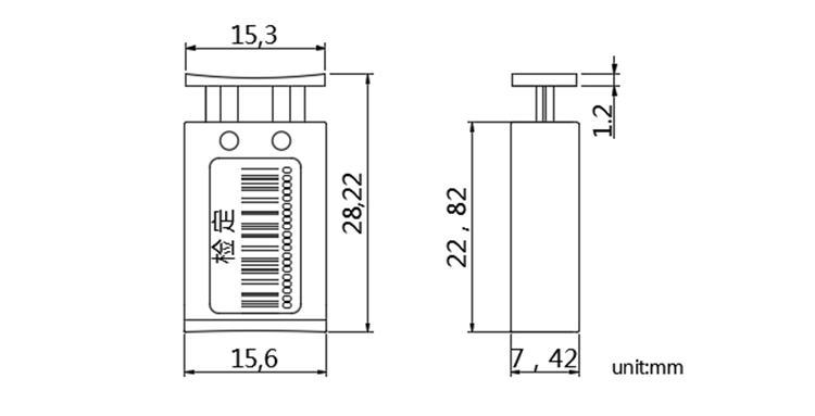 封印采用穿孔按壓式施封方式完成自鎖緊操作后,除非破壞封體,否則無(wú)法抽出封線或取出插件